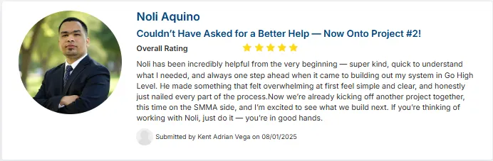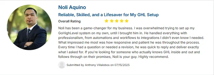 Unlike hiring multiple freelancers who each focus on a single task, I provide an end-to-end Go High Level solution — from setup, automations, and CRM migrations to AI voice/chatbot integrations and ongoing optimization — so you don’t have to manage or coordinate between different people; this means faster delivery, consistent quality, and a single point of accountability, giving you both the technical expertise and long-term support you need without the hassle of juggling multiple freelancers.